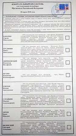 Presidente de la Federación Rusa | Candidato de partido (Registrado: 18 de diciembre de 2017) | ||