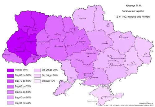 | Región | Kuchma | Kravchuk | Resultado nacional | |