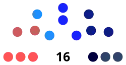 Chile Vamos (6): 3 UDI 3 RN Alianza de Gobierno (5): 3 PS 2 PR Sin coalición (5) 2 PDC 2 PRCh 1 PSC
