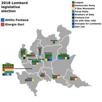 El 1 de junio de 2017, Giorgio Gori, el actual alcalde de Bérgamo, anunció su decisión de postularse para la presidencia por la coalición de centroizquierda.[2]