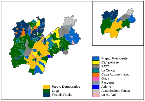 | Acuerdo por la Autonomía[21][22] | Liga Trentino (LT) | 13,05 | 5 | Maurizio Fugatti