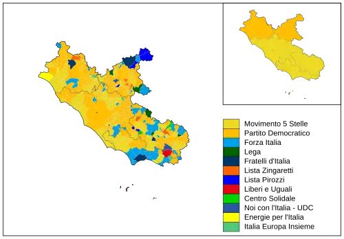- ↑ Luca Liverani (7 de marzo de 2018). «Lazio. Strada in salita per Zingaretti senza maggioranza in Regione». Avvenire (en italiano).