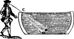 Ilustración de Los elementos de la filosofía de Newton (1738) sobre la visión del ojo humano.Cap. VI. — Espejos, telescopios. De las razones que dan las matemáticas de los misterios de la visión; que estas razones no son suficientes. — Espejo plano. Espejo convexo. Espejo cóncavo. Explicaciones geométricas de la visión. No hay una conexión inmediata entre las reglas de la óptica y nuestras sensaciones. Ejemplo en evidencia.