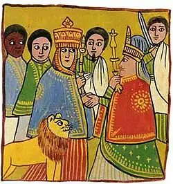 - ↑ Según el historiador Taddesse Tamrat, la confirmación de este título puramente ceremonial no implica que Baede Maryam se haya casado con su suegra Elena.