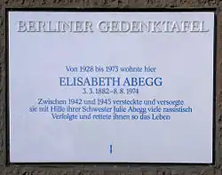 - ↑ Elisabeth Abegg Archivado el 18 de junio de 2018 en Wayback Machine. - Yad Vashem