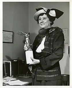 ![]() Fotografiada en 1951 sujetando la estatuilla del premio Lasker | ||