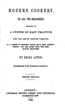 - ↑ Acton, Eliza (1868). Modern Cookery, for Private Families: Reduced to a System of Easy Practice, in a Series of Carefully Tested Receipts, in which the Principles of Baron Liebig and Other Eminent Writers Have Been as Much as Possible Applied and Explained (en inglés). Longman, Green, Reader, and Dyer. Consultado el 23 de diciembre de 2023.
