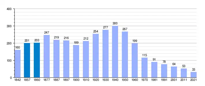 | 1860 | 1877 | 1887 | 1897 | 1900 | 1910 | 1920 | 1930 | 1940 | 1950 | 1960 | 1970 | 1981 | 1991 | 2001 | 2011 | 2017 |