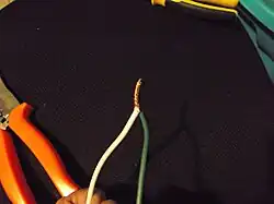 - 1. Se pela el aislante en la zona del cable principal dónde debamos hacer la derivación.