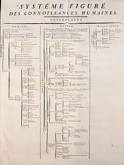 Para la ordenación temática y estructural de la enciclopedia, Diderot y D’Alembert se inspiraron en el árbol de los conocimientos humanos de Francis Bacon, expuesta en su obra Novum organum (1620) y también tuvieron en cuenta a Descartes y su Discurso del Método (1637). Los términos identificados en el árbol de conocimientos se ordenan por orden alfabético, de ahí el nombre de diccionario. Además, se añaden reenvíos en cada entrada hacia los términos citados o relacionados.