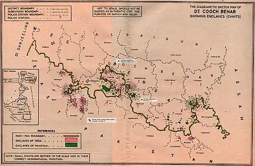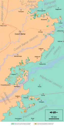 - ↑ Evgeny Vinokurov, "Theory of Enclaves" (2005) – Chapter 6: Enclave stories and case studies, page 117: Cooch Behar Archivado el 27 de julio de 2007 en Wayback Machine.