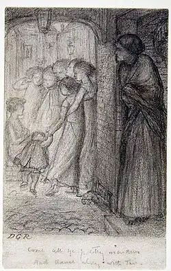 La temprana industrialización había provocado en Inglaterra un gran éxodo rural hacia las ciudades, donde los trabajos precarios abocaban a muchas antiguas campesinas a la prostitución, la cual aumentó considerablemente. Rossetti había tratado el tema de la prostitución ya en 1847 en cartas a su amigo William Bell Scott, quien escribió el poema Rosabell en 1846 (más tarde conocido como Maryanne) sobre ello. La Puerta de la Memoria, un dibujo que Rossetti hizo c. 1854, muestra una escena de Rosabell donde una prostituta al anochecer está empezando su trabajo, y ve un grupo de jovencitas inocentes "todavía en juegos" bailando. El dibujo puede haber sido creado para ilustrar el poema en un libro, pero fue pintado más grande como acuarela en 1857, y después repintado en 1864. En 1870 Rossetti publicó un poema comprensivo sobre una prostituta, Jenny.