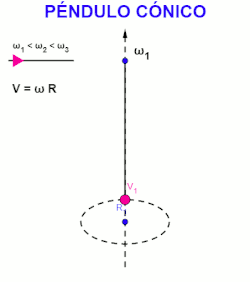 Un ejemplo de interés es el péndulo cónico del longitud , que actúa como un selector de velocidades, a mayor par de fuerzas ejercido sobre el péndulo, mayor velocidad alcanzará, mayor será su energía cinética de rotación y mayor, será, por tanto, la altura alcanzada. Esto se debe a que el ángulo que forma con la vertical aumenta al aumentar la velocidad angular, según la ley