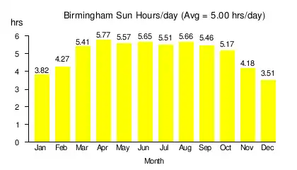 Alabama Power ha instalado cuatro tipos de paneles solares en Birmingham que se pueden controlar a través de Internet. La empresa pagará hasta 4,81¢/kWh durante el verano y 3,93¢/kWh en invierno por el exceso de generación de hasta 100 Sistemas de kW. [5] Las tarifas máximas de energía son entre semana, de 13:00 a 19:00 horas en verano y de 5 a 9:00 horas en invierno. [6] Los clientes que eligen la tarifa Time Advantage Energy pagan 7¢/kWh durante los períodos pico de invierno y 25¢/kWh durante los períodos pico de verano. Fuera de las horas pico se cobra 5¢/kWh. El uso de la ventaja de tiempo requiere un medidor de tiempo de uso y el cargo base aumenta en $10.50 cada mes. [7]