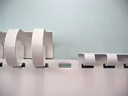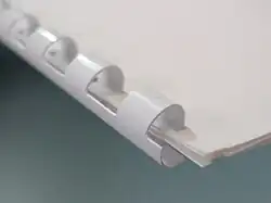En el caso del arillo metálico se distribuye abierto. Se inserta directamente en las hojas y luego se cierra con una máquina especial.