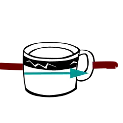 De hecho, la taza de café está intrincadamente enredada. No hay forma de desenroscar las bandas sin girar la taza. Sin embargo, considérese lo que sucede cuando se gira la taza, no solo a través de un giro de 360°, sino mediante dos giros de 360° para completar una rotación total de 720°. Luego, si la taza se baja al suelo, las dos bandas de goma se enrollan entre sí en dos giros completos de una doble hélice. Si la taza ahora se lleva a través del centro de una bobina de esta hélice y se pasa al otro lado, el giro desaparece. Las bandas ya no están enrolladas una sobre la otra, aunque no fue necesario realizar ninguna rotación adicional (este experimento se realiza más fácilmente con una cinta o un cinturón, véase más abajo).