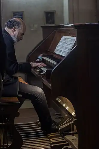 ![]() Enrique Rimoldi durante un concierto de órgano en la Catedral de Quilmes, 2019. | ||