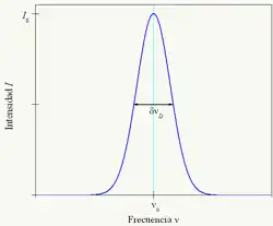 Puesto que en cualquier elemento de volumen del cuerpo radiante hay una distribución de velocidades dirigidas tanto hacia el observador como alejándose de éste, el efecto neto será un ensanchamiento de la línea observada. Si es la fracción de partículas con componente de velocidad to a lo largo de la línea de visión, la distribución de frecuencias correspondiente será