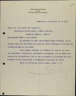 Después prometió ante Creelman retirarse del poder al término del periodo gubernamental en 1910, cualquiera que fueran las opiniones de sus amigos y partidarios. Daré la bienvenida a un partido de oposición. Si aparece, lo veré como una bendición y no como un mal, y si puede desarrollar poder, no para explotar sino para gobernar, estaré a su lado. Me olvidaré de mí mismo en la feliz inauguración de un gobierno totalmente democrático en mi patria.[11]