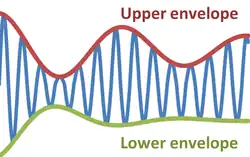 En física e ingeniería, la envolvente de una señal oscilante es una curva suave que describe sus extremos. Así, la envolvente generaliza el concepto de amplitud constante en amplitud instantánea. La figura ilustra una onda sinusoidal modulada que varía entre una envolvente superior e inferior. La función de la envolvente puede ser función del tiempo, espacio, ángulo o incluso de cualquier variable.