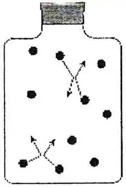 Otra consecuencia de las partes mínimas es la existencia de un límite de velocidad universal.[120] Los epicúreos postularon un tipo principio de inercia al sostener que los átomos siempre se desplazan con igual velocidad a través del vacío sin resistencia independientemente de su peso o forma.[121] Mientras se mueven, los átomos pueden chocar y rebotar entre sí, pudiendo unirse y formar un objeto más grande. Epicuro explicó la atracción magnética de ciertos cuerpos como imanes a causa de que "los átomos que fluyen de la piedra están relacionados en forma con los que fluyen del hierro, y así se entrelazan fácilmente entre sí; así es que, después de chocar con cada una de las dos masas compactas (la piedra y el hierro) luego rebotan en el medio y así se enredan entre sí, y arrastran el hierro tras ellos".[122] Los átomos vibran los unos con los otros a medida que mantienen la forma general del compuesto.[123]