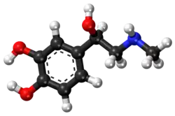 ![]() Modelo de bola y palo de la molécula de epinefrina (adrenalina) | ||