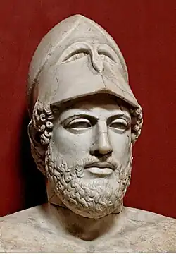Nuestra forma de gobierno no rivaliza con las instituciones de otros. Nuestro gobierno no copia a los de nuestros vecinos, sino que por el contrario es un ejemplo para ellos. Es cierto que nuestra forma de gobierno es denominada democracia, ya que la administración se encuentra en las manos de muchos y no de unos pocos. Pero aunque existe igualdad de justicia para todos y en igual medida en sus disputas privadas, la excelencia también es reconocida; y cuando un ciudadano es distinguido de cualquier manera, él es preferido para el servicio público, no como un privilegio, sino como un premio por su mérito. Tampoco la pobreza es un obstáculo, ya que un hombre puede beneficiar a su país por más que su condición sea sumamente oscura.[5]