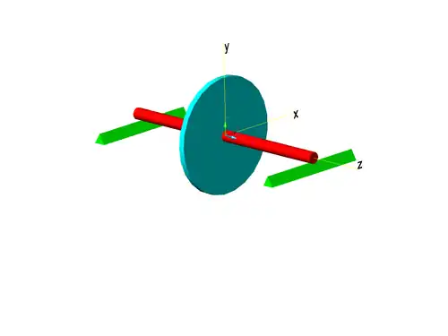 Al añadir esta masa de prueba m (conocida), el disco girará un ángulo φ y luego se detendrá otra vez. Ese ángulo será fácil de determinar.