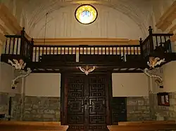 Alberga la capilla mayor y el retablo, que ocupa toda la pared; en los muros laterales, dos balconcillos o tribunas de forja del siglo XVII.
