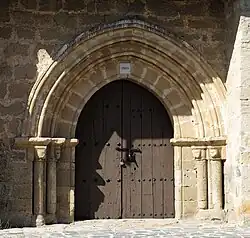 Se trata de un templo de una sola nave, con sendos contrafuertes que enmarcan la portada, sosteniendo un tejadillo para resguardar la entrada. La portada presenta un arco apuntado de dovelas muy regulares.