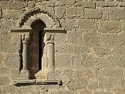 El ábside es de cabecera cuadrada de menor altura y anchura que el resto de la nave, dos vanos con arcos de medio punto de extradós decorado con puntas de diamante y arquivolta lisa, sobre dos columnas. El hastial presenta una espadaña en la que se abre un vano de medio punto. La nave se divide en tres tramos por medio de dos arcos fajones y se cubre con bóvedas de aristas.