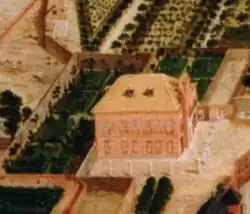 El conjunto estaba rodeado al norte y oeste por una huerta, conocida como del Rey o de San Juan.[6] Esta huerta lindaba al norte con la calle de Alcalá y al oeste con el paseo del Prado y estaba separada por una tapia del resto de jardines del Buen Retiro.