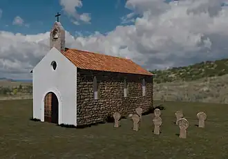 ![]() Reconstrucción de la ermita, lado de la puerta | ||