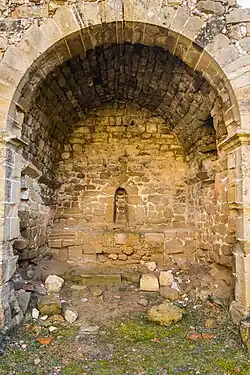 Sobre los restos de la primera construcción se levantó, a finales del siglo XII, una ermita románica que constaba de una nave rectangular y cabecera cuadrangular. La nave tendría una cubierta de madera mientras que la cabecera está cubierta con una bóveda de cañón apuntada recorrida por una imposta lisa. El ábside contiene una ventana abocinada terminada en una saetera al exterior, actualmente cegada.