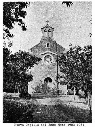 La segunda capilla fue inaugurada en septiembre de 1903 y, también, fue llamada Capilla de La Soledad. Estaba reubicada, según se ha dicho, veinte metros al sur de la que había sido destruida, para ocupar una situación más elevada, hacia el centro del Castañeu de la Soledad. Este había sido donado, a tal fin, por Eulalia Busto. Esta nueva capilla era más alta, aunque más pequeña, y su fachada principal estaba presidía por un rosetón, cristalera de colores y en lo alto de la espadaña había dos campanas. La puerta de entrada fue protegida, posteriormente, con una “marquesina”. Tenía un retablo de castaño tallado y de estilo gótico, cubierto de panes de oro que fue construido en los talleres del gran artista Mori, en Oviedo. En el centro del camarín estaba la imagen del Ecce Homo y, en sus hornacinas laterales, a la derecha, la imagen de La Dolorosa (aunque le decían La Verónica), y, a la izquierda, la de San Pedro. El presbiterio, cubierto de mármol y en dibujo de damas, estaba separado del resto de la capilla por una reja, que como el resto del piso era de madera. El edificio no sufrió daños durante la Guerra Civil, pero al ser arrancados el retablo y las imágenes, el templo hubo de ser reformado al finalizar la contienda.