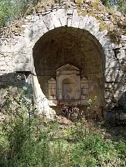 - De época moderna (ss. XVI/XVII) sería el pequeño altar de fábrica con nicho y venera central levantado en el ábside, franqueado por otros dos menores.[10][7]