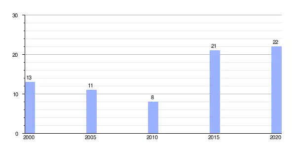 | Gráfica de evolución demográfica de Ernes (aldea) entre 2000 y 2020 |
