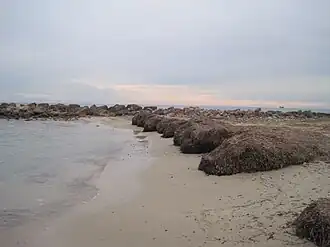 Es una playa de arena blanca con un buen equipamiento para los visitantes que la frecuentan.