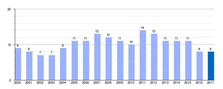 | Gráfica de evolución demográfica de Escobados de Arriba entre 2000 y 2017 |