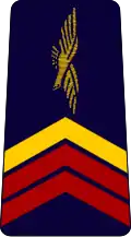 | Suboficial Mayor | Subteniente | Brigada | Sargento Jefe | Sargento | Cabo Jefe | Cabo | Aviador de Primera | Aviador de Segunda | |||||||||||||||||||||||||