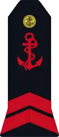 | Mayor | Cabo principal | Cabo primero | Cabo | Cabo segundo | Semicabo de 1.ª Clase | Semicabo de 2.ª Clase | Marinero de primera | Marinero | ||