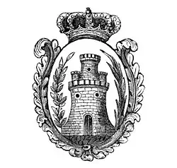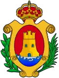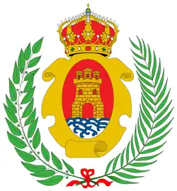 ...un castillo de oro donjonado de tres torres en campo de gules, con el escudo timbrado de corona.[4]