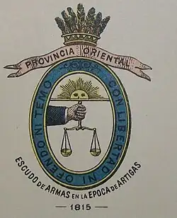 Según la tradición, José Gervasio Artigas hizo diseñar este escudo de la Provincia Oriental en Purificación del Hervidero a orillas del río Uruguay, a mediados de 1815 (es decir en fechas del Congreso de Oriente celebrado en Concepción del Uruguay, como emblema de la provincia directamente a su mando), en mayo de 1816 este escudo fue oficializado en la ciudad de Montevideo.