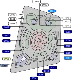 - ↑ Maternidad (2001), Pastor de la flauta (2002), Navegación (2003), Joven (2004), Juventud (2005), Figura femenina (2006), Mujer con niño y flautín (2007), El forjador (2008), Gerona (2009), Montseny/Mujer (2010), Pescador/Emporion (2011), Trabajo (2012), La Diosa (2013), Sabiduría (2014), Pomona/Pastor del águila (2015), El espíritu popular/Mujer con imagen de la Virgen (2016), Lérida (2017), Tarragona (2018), Mujer con ángel/Hércules (2019), Figura femenina/Montserrat (2020), Barcelona (2021), Fuente de los seis putti (2801), Monumento a Francesc Macià (2048).