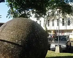 Esferas de piedra de Diquís frente a la entrada de la Corte Suprema de Justicia de Costa Rica, San José