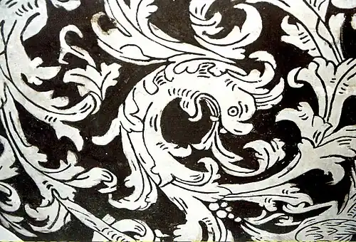 Detalle de esgrafiado en la iglesia de Nuestra Señora de los Ángeles (Valencia). -