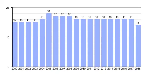 | Gráfica de evolución demográfica de Espiñeira entre 2000 y 2018 |