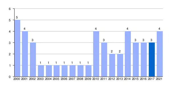 | Gráfica de evolución demográfica de Espinosilla de San Bartolomé entre 2000 y 2021 |