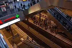 La superficie total es de 70 000 m² distribuidos en cinco plantas, con un total de 15 000 m² para restaurantes y comercios situados en las tres plantas centrales, mientras que la superior e inferior albergan los andenes ferroviarios. A ambos lados de la estación se alzan dos bloques de oficinas y viviendas.