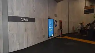 La Estación Glória es una estación del metro de Río de Janeiro, que se ubica en el barrio de Glória, Río de Janeiro, entre las estaciones Cinelândia y Catete.[2] Fue inaugurada en 1979 siendo una de las primeras estaciones de metro de la ciudad.[3][4] Posee un flujo de 18 mil pasajeros por hora en el periodo de pico y tiene salidas tanto para la rúa da Glória como para la de Catete y el largo da Glória. Alberga en su interior algunos quioscos de comercio y un busto del locutor Haroldo de Andrade. La estación fue la terminal de la línea 2 entre diciembre del 2009 y febrero del 2020, entre las 5 y las 16 horas, los días útiles. El resto de días la línea se prolongaba hasta la estación Botafogo y, los fines de semana, sólo hasta la estación Estácio